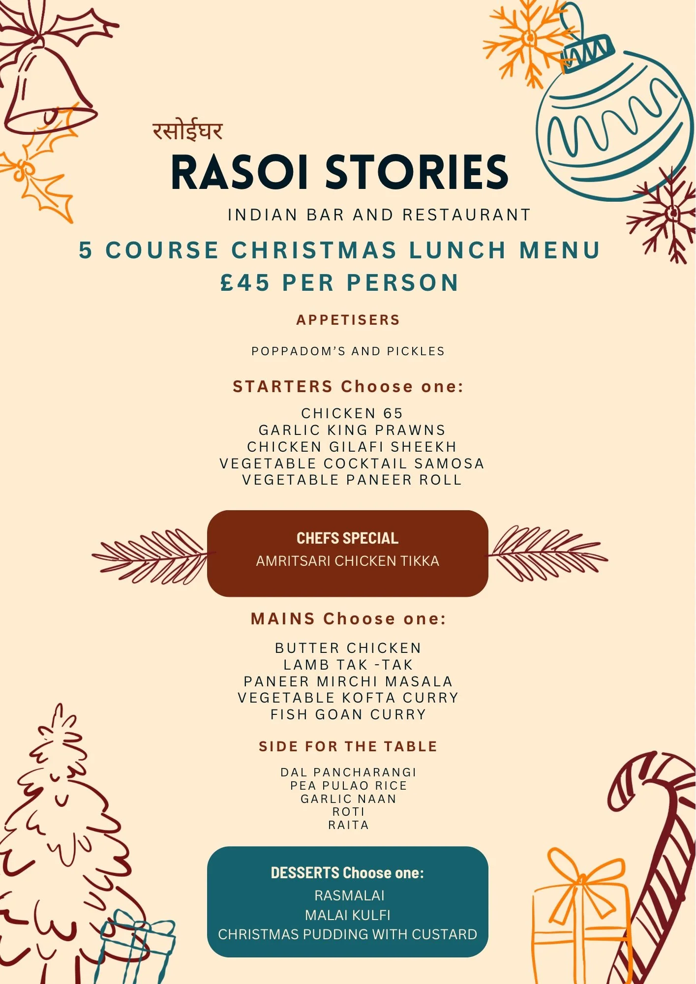 Are you tired of sticking to the same old traditional Christmas lunch? Well, it's time to add a little spice to your festive celebrations! Join us this Christmas for an experience that will tantalise your taste buds and create lasting memories with your loved ones. Instead of the usual spread, we invite you to indulge in a delightful 5-course Indian menu and you’ll even be welcomed with a glass of bubbly.